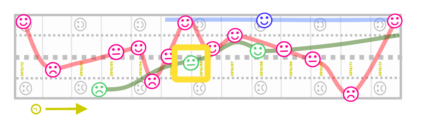 開発者さんに起こる気持ちの変化を、『バイオリズム』として表現しました