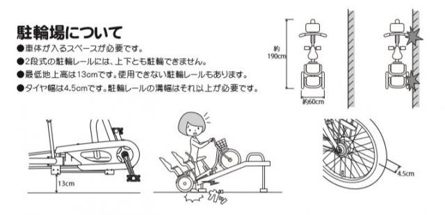 車体のバランスをとることが難しいため、スピードを落として走行してください。 バランスが保ちにくいと感じたら自転車から降りて手押しで通行してください。