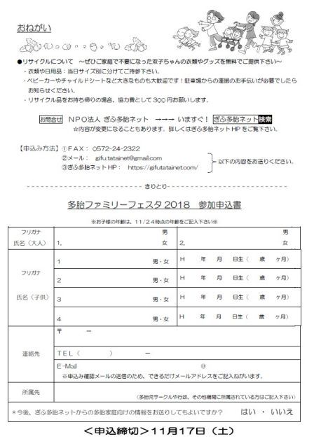ぎふ多胎ネットさん主催 多胎!ファミリーフェスタ2018