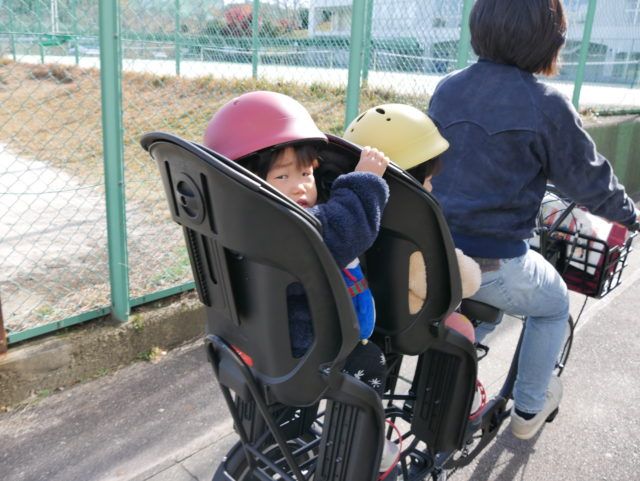 私道だからできることだけど、中原があえて子ども乗せ椅子に座らせてもらって