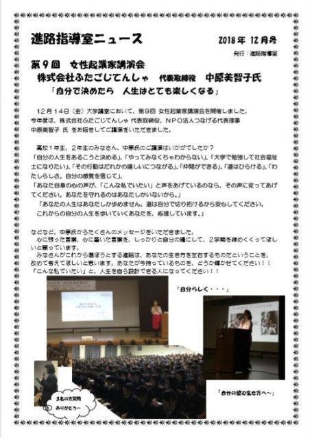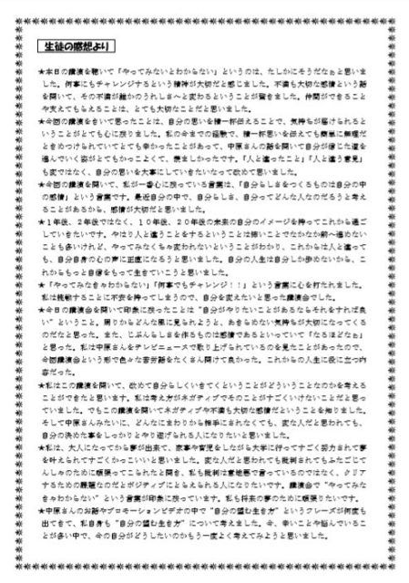 園田学園高等学校HPに今回の講演風景や感想などUPされています。